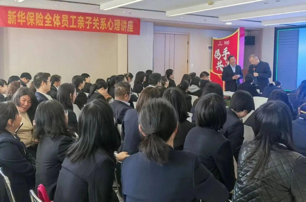 河南郑州,2025年3月20日,新华保险特邀心理专家岳晓亮举办“让生命之花更加美丽——如何培养出更优秀的孩子”讲座,几百位客户与员工到场。
